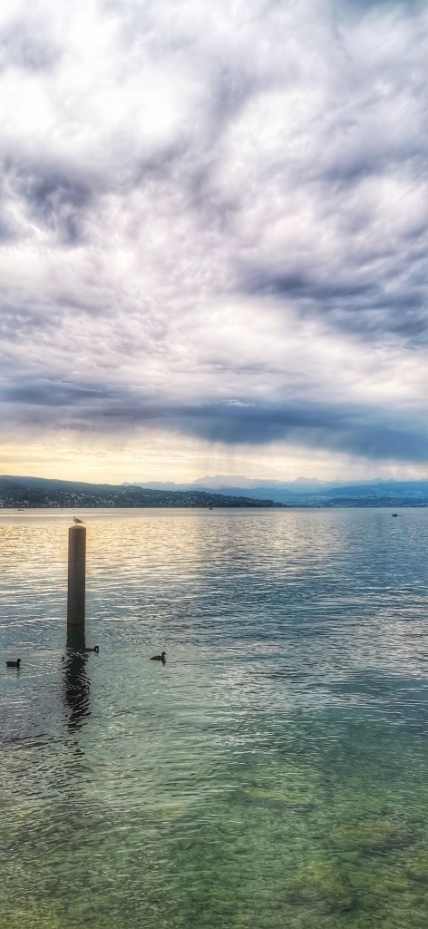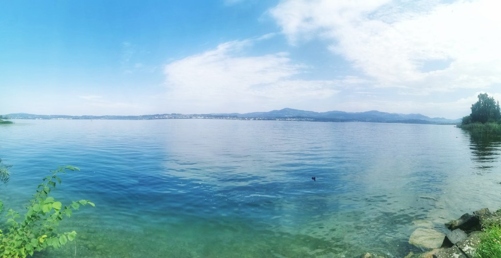 Ich liebe diesen Weg am See entlang, die Stimmung ist immer wieder anders, der See ist mal mehr Grün oder Türkies, dann wieder fast Schwarz oder tief Blau! Und so früh am Morgen hat’s auch noch nicht so viele Menschen die unterwegs sind. Es ist einfach herrlich und ich bin so Dankbar das ich so nah am See wohne, zu Fuss bin ich in nicht 15 Minuten am See.