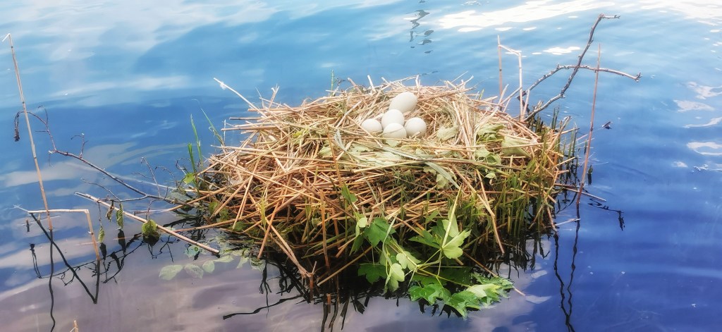 Regen, Sonne, hübsche und vor allem wieder mal natürlich Wolken, Enten, Schwäne, den See, Sukkulenten und Kakteen, Jogger, ein Schwanennest mit Eier drin. Jogger Menschen mit Hunden, Gärtner.