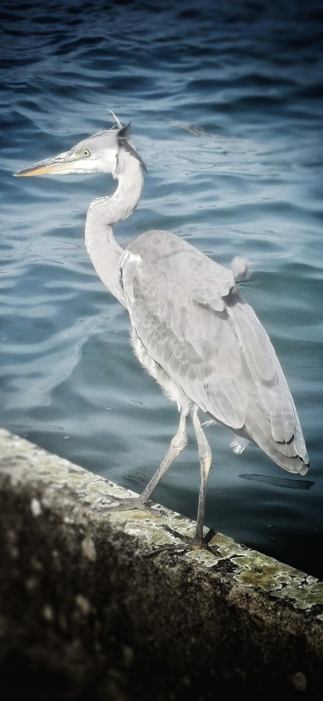 Sonne, blauer Himmel, Wolken, viel Geoengineering, Hunde, Kinder, Menschen die noch mal ein bad im See geniessen. Und viele die noch mal das schöne Wetter genossen haben. Einen Graureiher, knapp 2 Meter von mir entfernt, ich hätte ich fast berühren können.