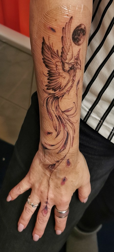 Dann kam der erste Geburtstag von mir ohne meinen Mann. Das war hart, aber ich habe mir selber etwas auf den Geburtstag geschenkt und auch dies war für mich noch mal ein Ding welches mir gut tat. Ich hab mir nämlich ein Tattoo geschenkt. Es war ein weiter heilsamer Akt.