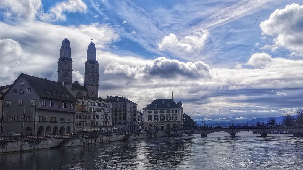 März – Stadt Zürich – Innenstadt mit Blick auf das Grossmünster und die Limmat