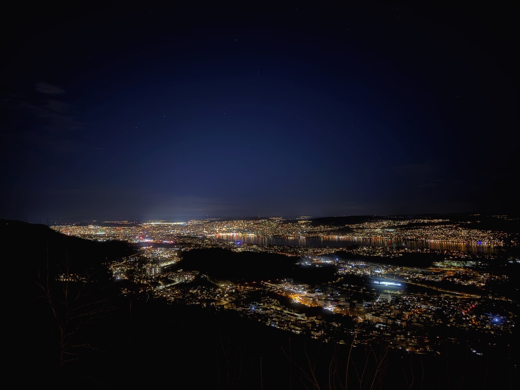 Mein Freund machte den Vorschlag mit noch einen Aussichtspunkt zu zeigen und so brachte er mich zurück, über den See und dann hinauf zu dem besagten Aussichtspunkt. Inzwischen war es dunkel und wir spazierten durch den dunklen Wald. Etwa 20 Minuten später standen wir auf der Platform und konnte auf die erleuchtete Stadt gucken.