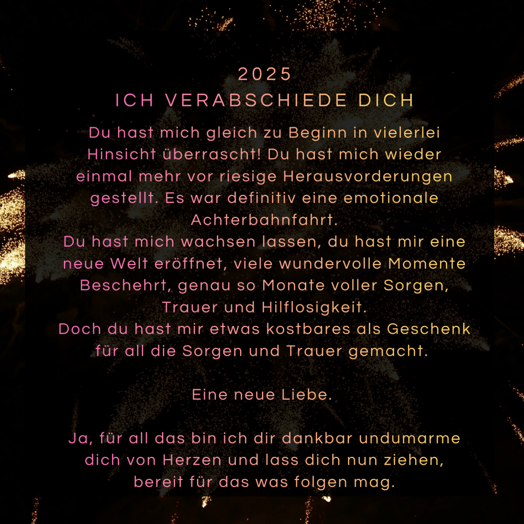 Ich möchte endlich aus dem Überleben raus kommen und rein ins volle Leben. Nicht immer alles über und zerdenken. 🤯 Einfach geniessen und erleben. Mal sehen wie mir das dieses Jahr gelingt. Wohin die Heilung führt, wie weit ich komme.